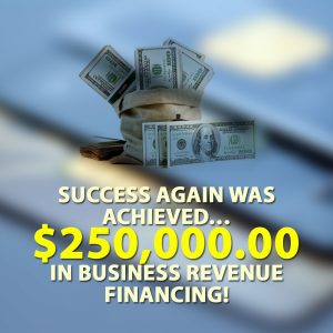 Success again was achieved… $250,000.00 in Business Revenue financing!